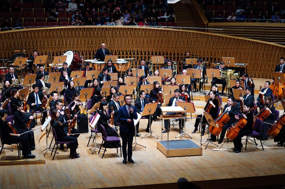 本場音樂會,中西方不同音樂之間的碰撞融合營造出一種莫名驚艷和諧的視聽夢境?!遁p騎兵序曲》雄壯威武地拉開了本場音樂會的序幕;《金銀圓舞曲》雍容華貴、光芒四射的表現(xiàn)感深入人心;《假日小號手》和大家耳熟能詳?shù)氖フQ名曲《雪橇》讓現(xiàn)場的氛圍既輕松又愉悅?!短K三》組曲用京劇的音樂語言,通過交響樂的形式展現(xiàn)出中華傳統(tǒng)文化無盡的獨特魅力;《洪湖主題隨想曲》《長征交響曲》表現(xiàn)了曲折壯麗的革命之路;民族味道十足的《信天游隨想》讓現(xiàn)場聽眾贊嘆不已。