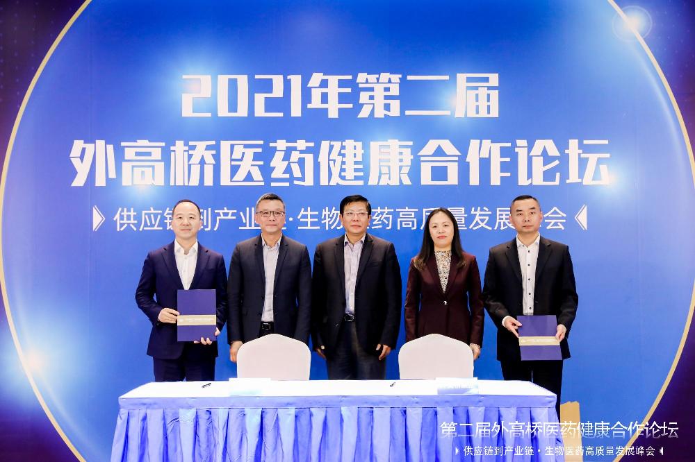 上藥控股有限公司副總經(jīng)理任剛、上海外高橋集團股份有限公司總經(jīng)理俞勇代表雙方現(xiàn)場簽約。