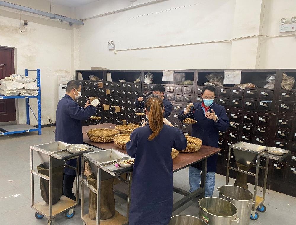 3月3日起,松江區(qū)衛(wèi)健委向上藥余天成(上海)醫(yī)藥有限公司西林代煎部征集疫情防控中藥湯劑。短短時間,湯劑需求量就從每日的1600貼增至6000貼。代煎部全體員工連續(xù)加班加點(diǎn),抽調(diào)各部門援手相助,累計已完成23000多包湯劑和21個點(diǎn)位的配煎送任務(wù),每天都確保將熱乎乎的防疫湯劑交到前哨一線人員手上。