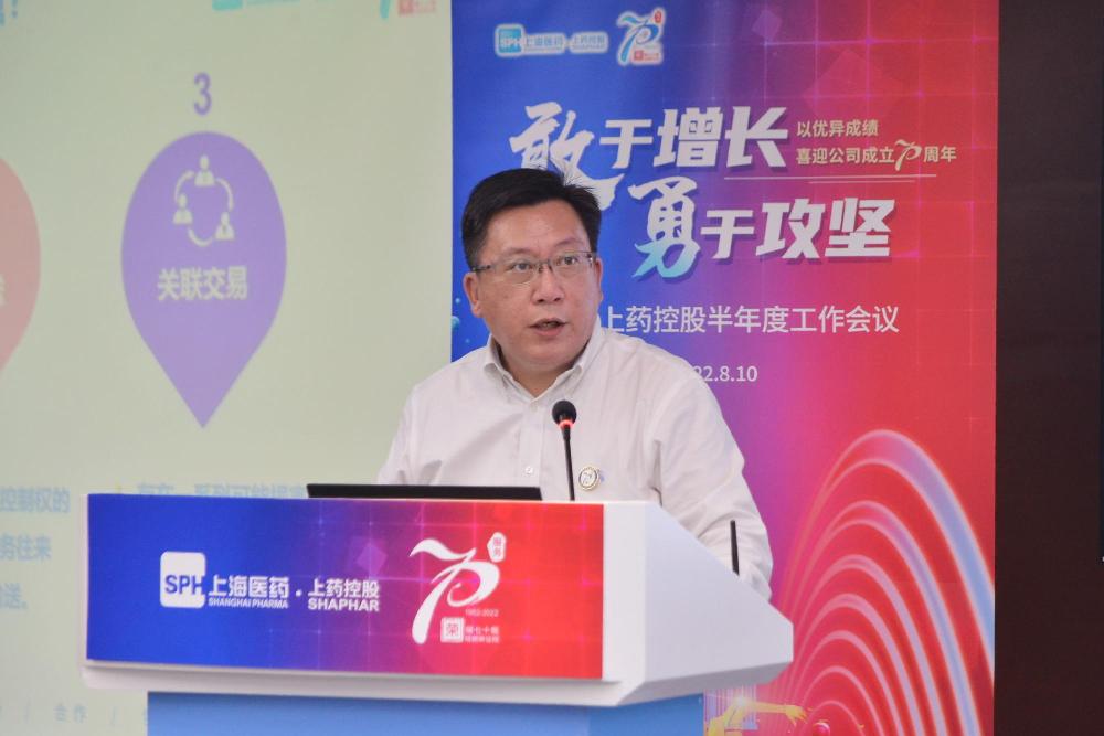 上藥控股戰(zhàn)略創(chuàng)新部總經(jīng)理黃文爭(zhēng)作《上半年度重點(diǎn)工作進(jìn)展》報(bào)告。