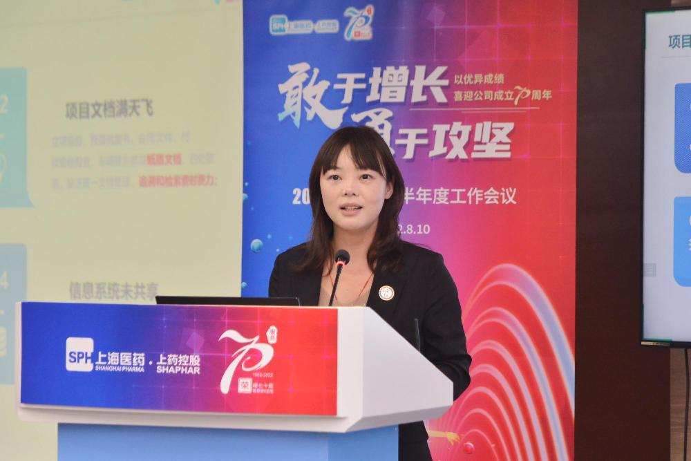 上藥控股副總經(jīng)理、財(cái)務(wù)總監(jiān)董麟瓊作《上半年度績(jī)效對(duì)話》報(bào)告。