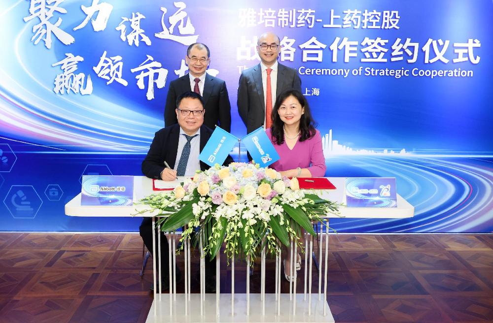 9月22日,上藥控股與雅培制藥在楓林國際大廈舉行戰(zhàn)略合作協(xié)議簽約儀式。雅培藥品業(yè)務(wù)部業(yè)務(wù)副總裁兼中國總經(jīng)理湯興斌,全國商務(wù)及招標(biāo)總監(jiān)徐起鼎;上海醫(yī)藥執(zhí)行董事、副總裁、上藥控股總經(jīng)理李永忠,上藥控股副總經(jīng)理、上藥國際供應(yīng)鏈總經(jīng)理、全國采購中心總經(jīng)理宋潞潞,以及雙方團(tuán)隊(duì)代表出席并見證了本次簽約。