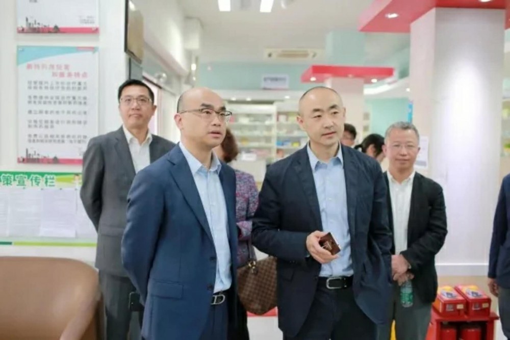 上海醫(yī)藥執(zhí)行董事、上藥控股總經(jīng)理、上藥康德樂董事長李永忠(左三)參訪上藥康德樂大藥房廣州店