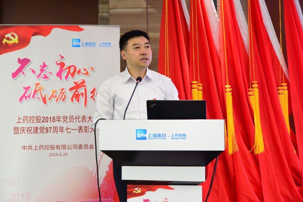 6月20日,上藥控股召開2018年黨員代表大會暨七一表彰大會。上海醫(yī)藥黨委副書記趙勇,上海醫(yī)藥執(zhí)行董事、上藥控股總經(jīng)理李永忠,上海醫(yī)藥紀委書記環(huán)建春,上藥控股黨委書記柳亞玲,上海醫(yī)藥黨群工作部部長、工會副主席佘群出席會議。上藥控股黨委委員、紀委委員、直屬黨組織書記、全體黨員代表、獲表彰先進集體及優(yōu)秀個人等共150余人與會,上藥控股副總經(jīng)理唐鵬程主持會議。
